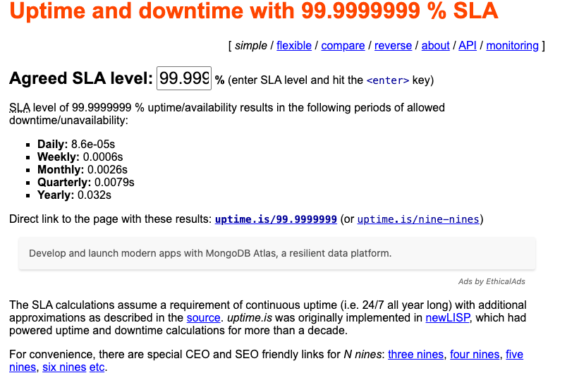 Even AWS S3 doesn't want to guarantee 100% availability even if I think it is.